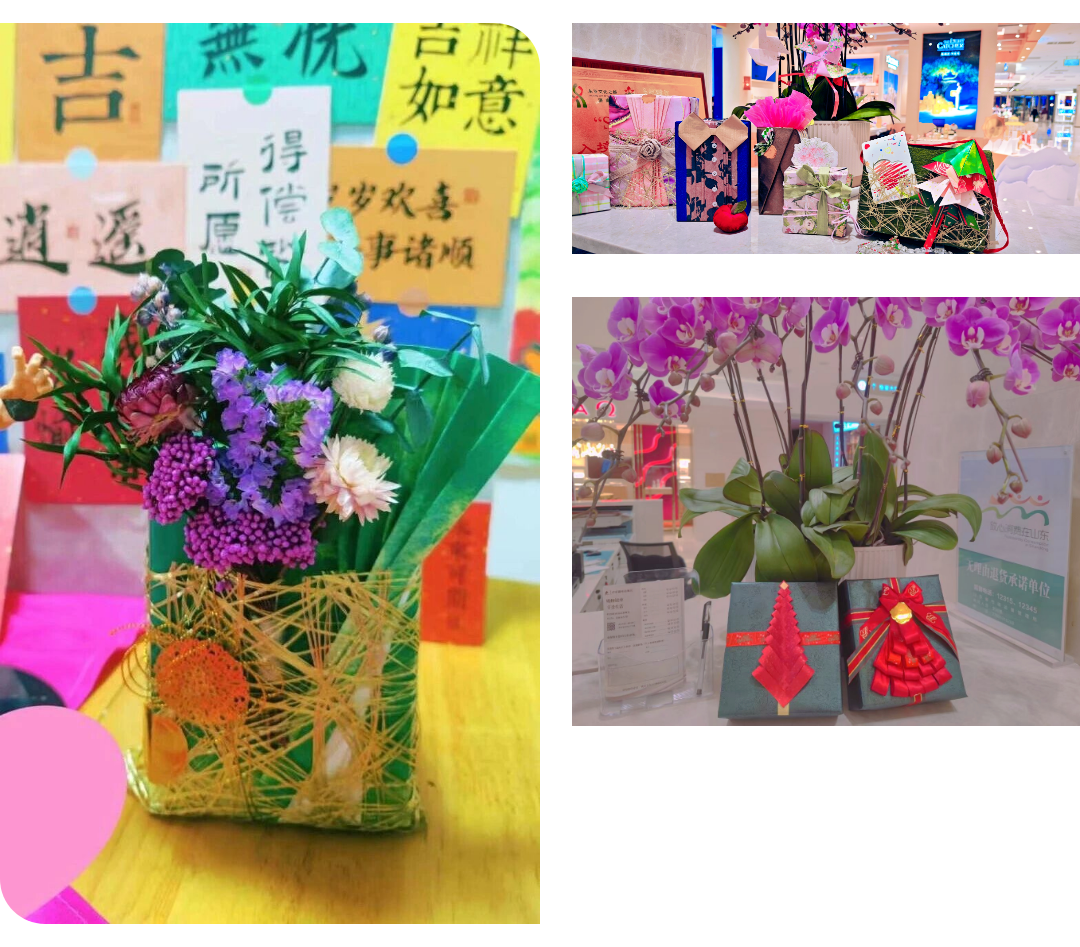 為了進一步提升服務(wù)技能,客戶服務(wù)團隊全員系統(tǒng)組織從基礎(chǔ)包裝到絲帶藝術(shù)、色彩搭配的訓(xùn)練,按生日、節(jié)日、婚慶等節(jié)點推出主題包裝,滿足顧客多樣化禮品包裝需求??偱_陳列優(yōu)秀作品,開設(shè)線上預(yù)約包裝渠道,最大限度提升了顧客滿意度及銷售轉(zhuǎn)化率。