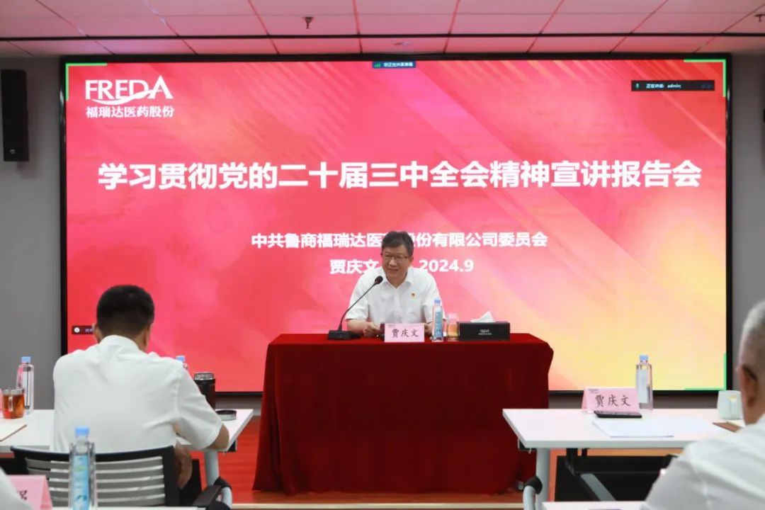 近日,魯商集團黨委宣講團成員,黨委常委、董事。副總經理、工會主席,福瑞達黨委書記、董事長賈慶文到福瑞達宣講黨的二十屆三中全會精神。